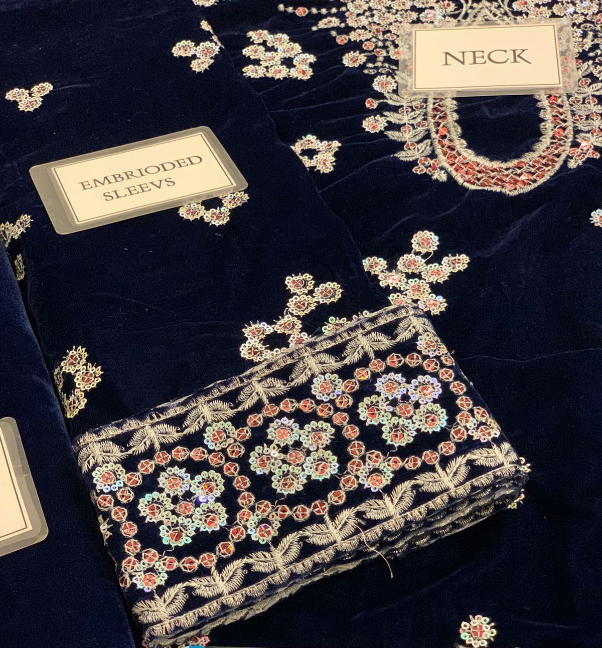 Velvet fully heavy alternet embroidered spengle work front with fully heavy velvet embroidered spengle work daman boarder with embroidered spengle chak lace