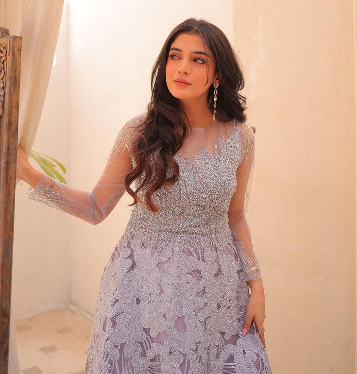 Maxy Ghair 3 yards Approx on Net Stuff with Heavy Thread Embroidery with Sequence